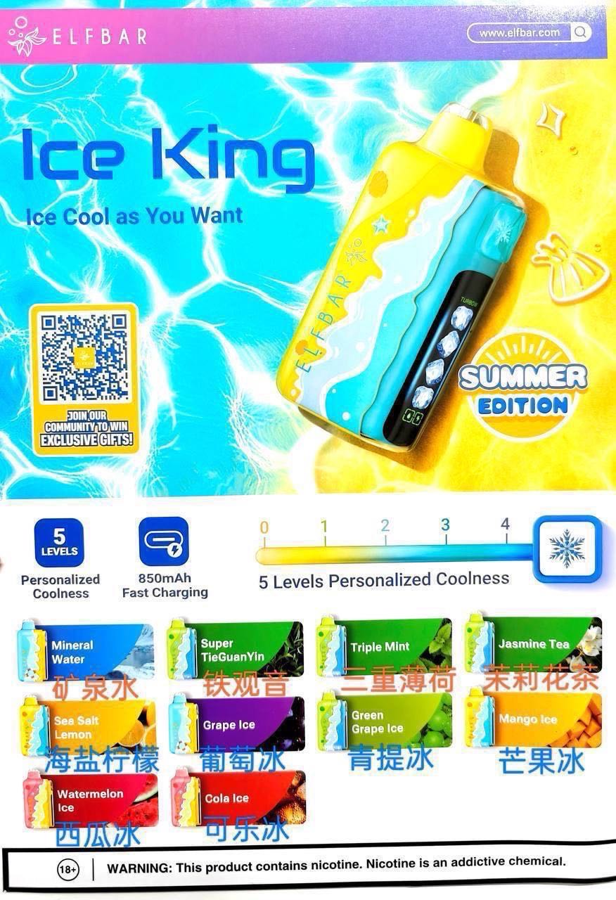 【正品ELFBAR冰神夏日限定款40000口】王嘉尔同款 5档调节凉度 容量更大 口感升级颜值拉满